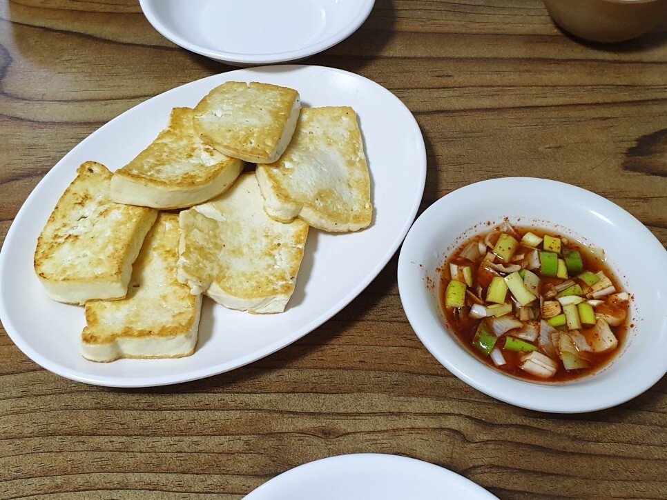 빠르게 두부부침이 나왔어요.